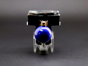 The Lapis Lazuli ball has another important merit than centroid control. Due to its composition blended of a few kinds of sodalite having spherical shape, vibrating wave flown from the north pole of the ball is absorbed in the crystal architecture mingled inside, and vibrating wave running down the ball surface is finally cancelled at the south pole of the ball.
